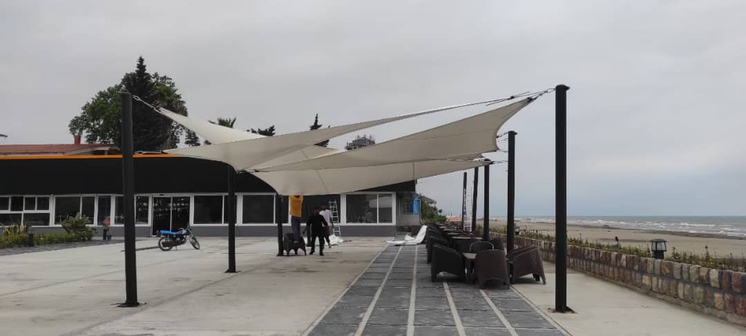 در این پروژه، تیم سایبان شمال طراحی و اجرای یک سایبان نامنظم با پارچه PVC مقاوم را برای فضای باز یک کافه مدرن بر عهده گرفت. به دلیل فرم خاص محیط و زاویهدار بودن دیوارها، استفاده از سایبانهای معمولی ممکن نبود. با بهرهگیری از سازههای منعطف و برش دقیق PVC، سایبانی کاملاً منطبق با فرم فضا طراحی شد.
